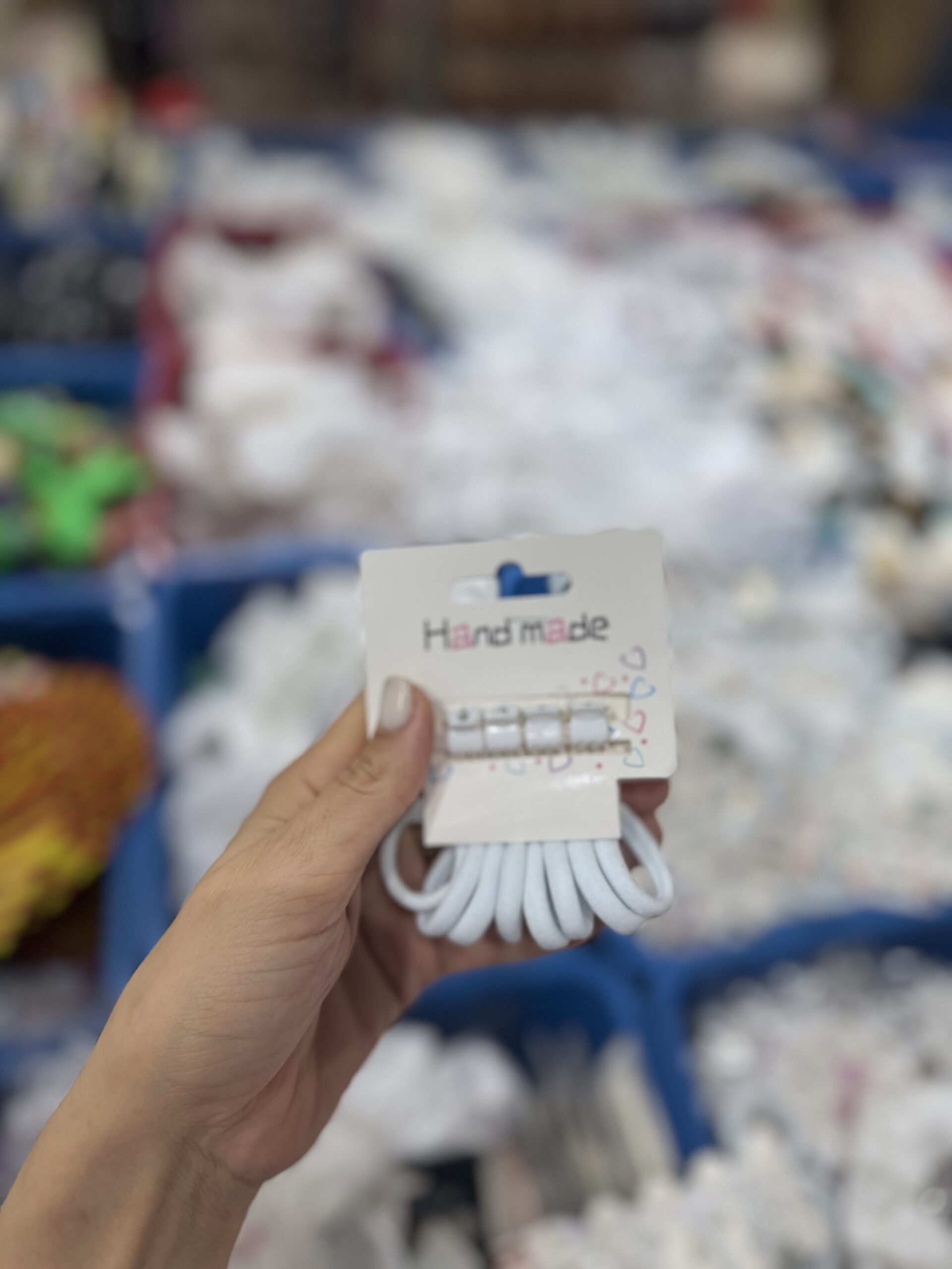 طقم من ربطات الشعر القطنية البيضاء والمشابك بتصميم بسيط وأنيق يناسب مختلف الإطلالات.