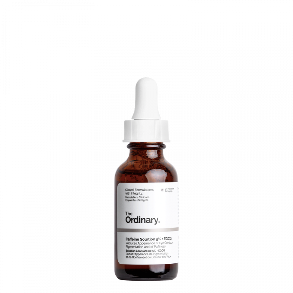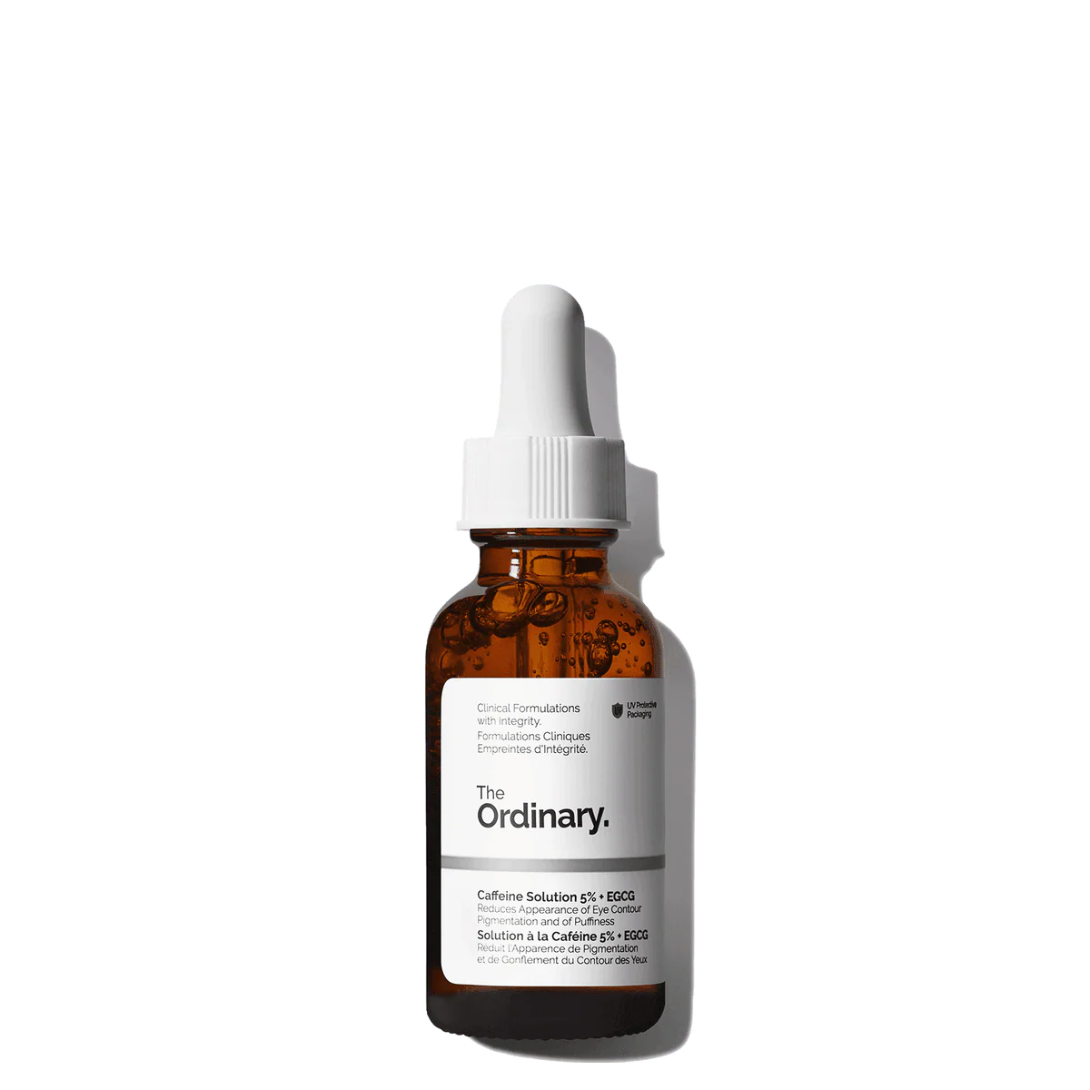 سيروم The Ordinary Caffeine Solution 5% + EGCG يحتوي على تركيز عالٍ من الكافيين بنسبة 5% بالإضافة إلى EGCG (مركب قوي موجود في الشاي الأخضر)، ما يجعله فعّالاً في تقليل الانتفاخ والهالات السوداء تحت العين.